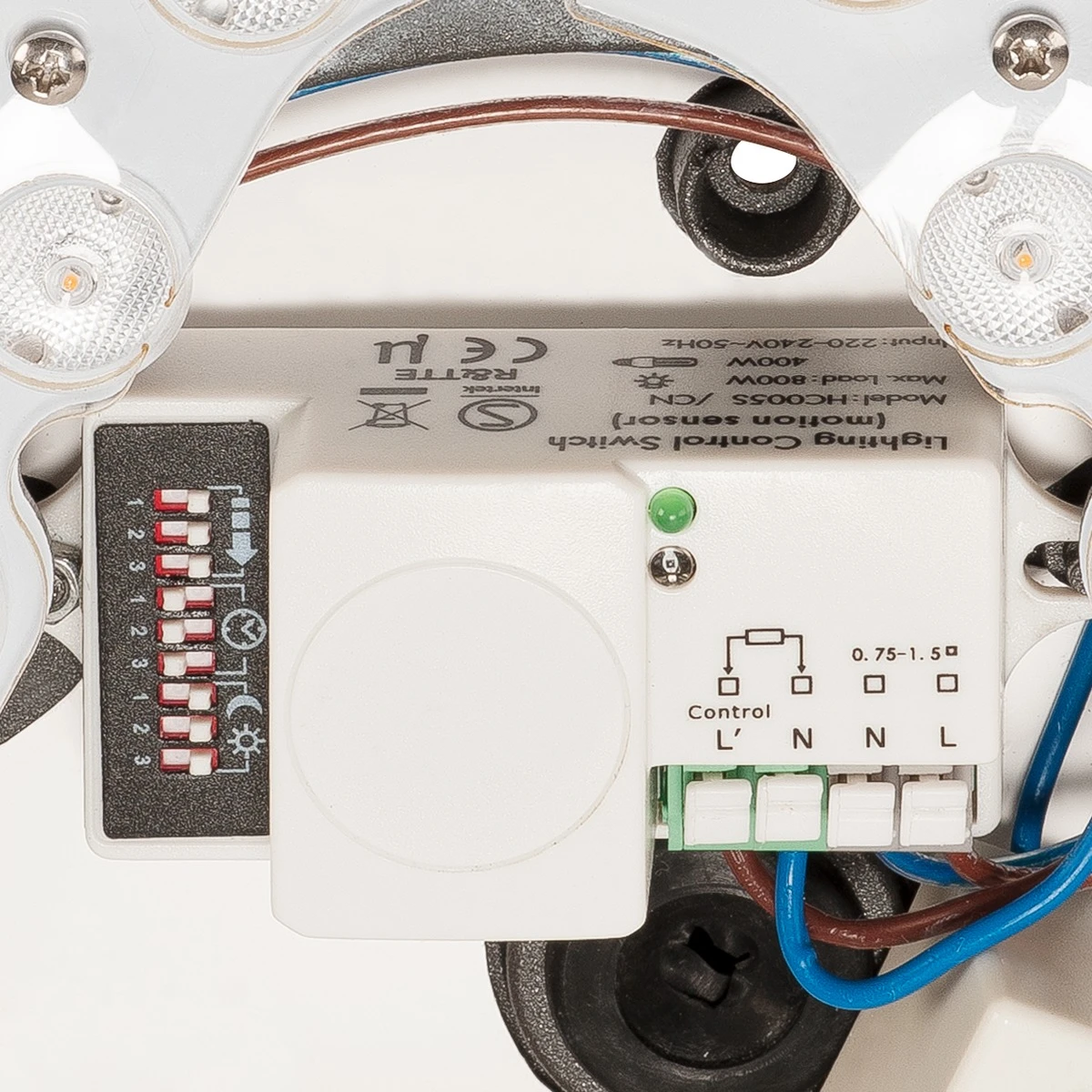 are equipped with Microwave sensors and the control gear is located inside the front of the fitting. As per the illustration above