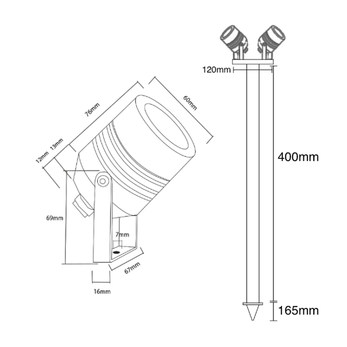 The AlvaLED Adjustable Twin Spike Light is a smart, modern garden spotlight. As well as this version with a GU10 bulb holder. Two adjustable spotlight heads attach to the twin adaptor