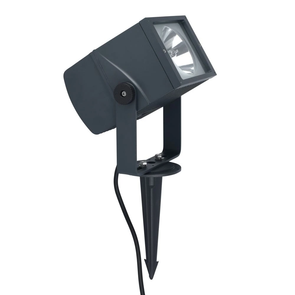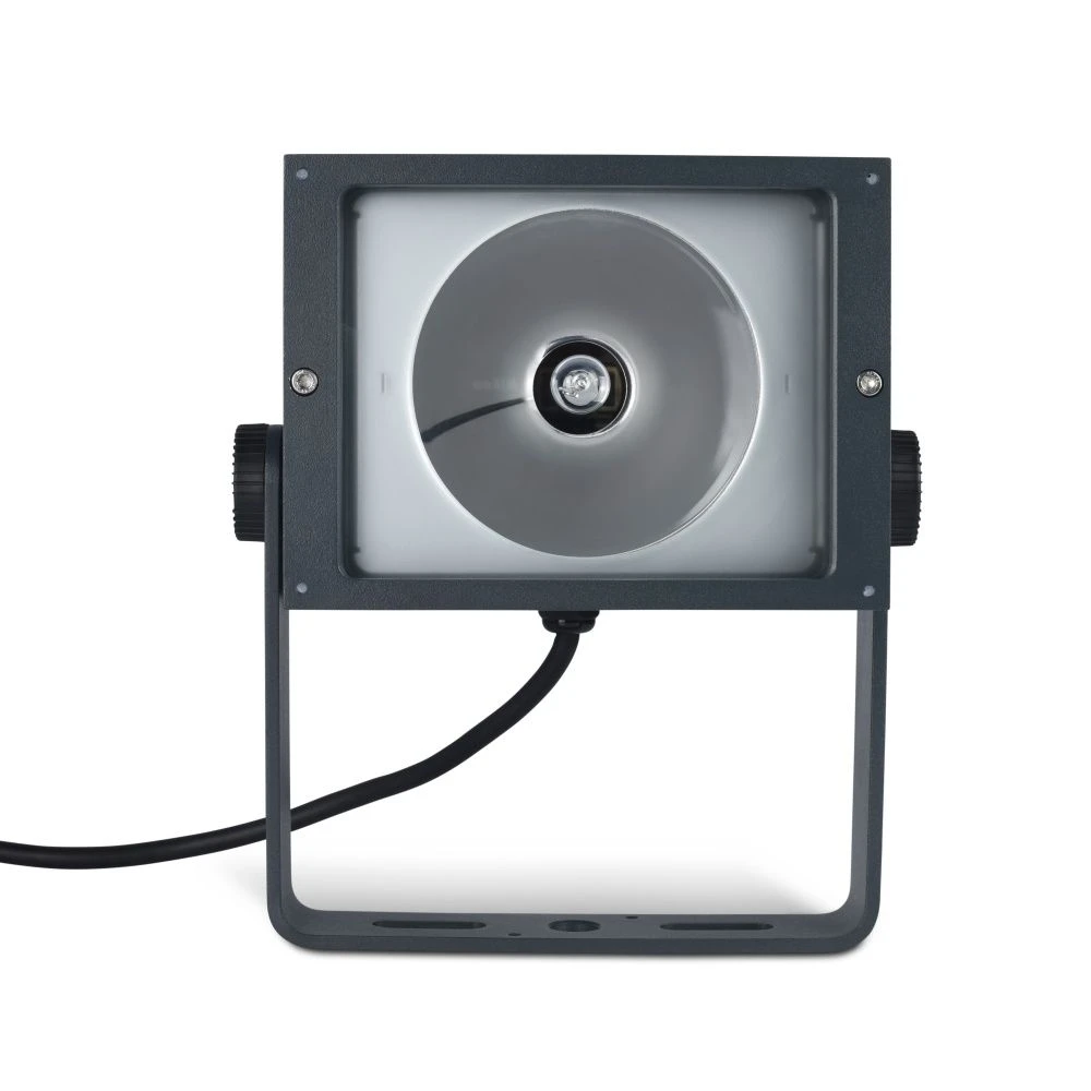 Stirrup bracket for mounting on walls or an optional ground spike. 20mm IP68 gland provided for connection to mains supply.