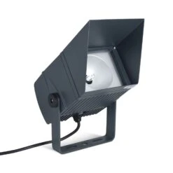 The code E94150W is a surface-mount wide beam flood light with a 60 degree beam angle primarily designed for energy-saving up lighting of trees or building facades. Apollo has an adjustable stirrup bracket for mounting on walls or an optional ground spike. The lens has “through-flow” slots to allow water to flow off the lens even if pointed directly upward or fitted with a glare shield. It uses a 150 watt single-ended metal halide lamp and polished reflector to project a 60 degree symmetric circular beam for up lighting larger trees: the central 60 degree beam is ideal for up lighting from beneath and is complemented by peripheral light spread for coverage of canopies. Where the shape of the tree falls within a 40-60 degree arc, use E94150W to cover up to 30m high, subject to density & colour of canopy & structure: perception of brightness varies between different people. If the tree has a wider spread, especially over 10m, use 1 or more E94150W 60 degree spotlights for a fuller effect. Use 70w models for smaller trees . Where the outer canopy is dense and the inner canopy & structure is more open, up light the central trunk & branches with one Apollo 36 degree spotlight and position other Apollo spotlights to illuminate the outer canopy. Look up through the tree you propose to light – if you can see up through the branches, then light will penetrate the canopy and structure as well. If not, use up lights to light the tree externally. Lighting large trees is a black art: test the position of up lights with a temporary wiring set-up before final installation. Lighting of trees with very open canopy may be brighter than desired – consider Apollo 35 35w metal halide spotlights or a range of LED floodlights as a lower power alternative. This advice is for general guidance and subject to branch & canopy structure and foliage density, colour & translucence.