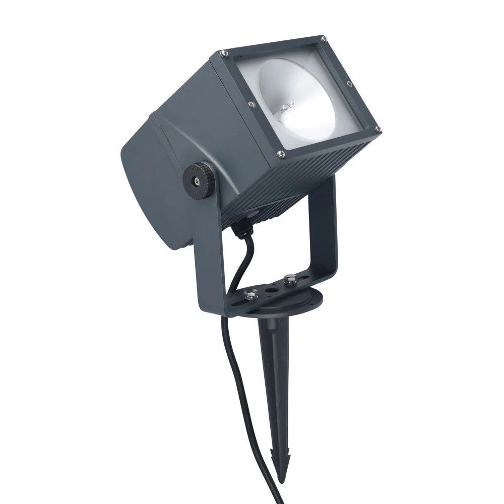 Stirrup bracket for mounting on walls or an optional ground spike. 20mm IP68 gland provided for connection to mains supply.