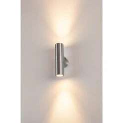 Astina, slim up and down wall light, 2 x mains GU10 lamps, brushed aluminium , IP44