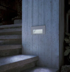 perimeter walls, staircases or as a step light. Easy to install mains 240v supply. The light fitting is designed to throw
