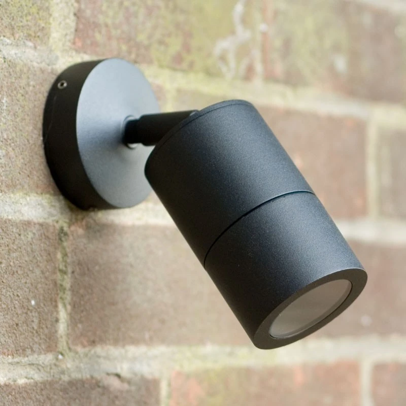 Compact 240v – Black Powder Coated Aluminium IP65 GU10 – Adjustable Spot Wall Light