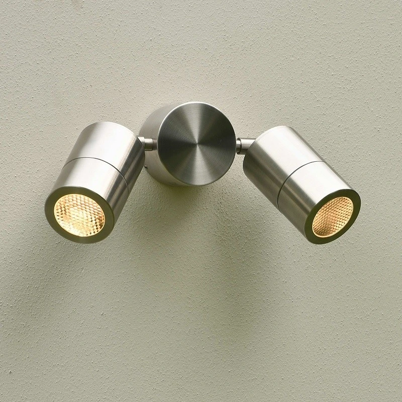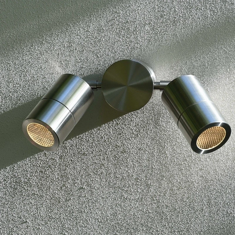 Compact 240v – 316 Stainless Steel IP65 GU10 – Adjustable Twin Spot Wall Light -Available In 3 Colours