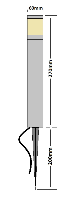 spike for installation in soil and gravel. The height is 270mm and diameter 60mm.Â