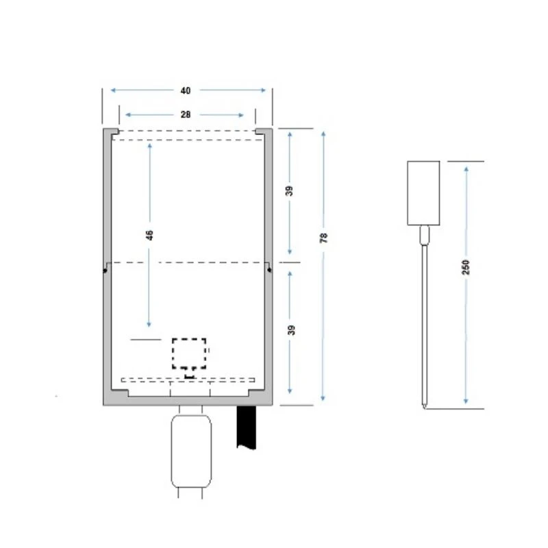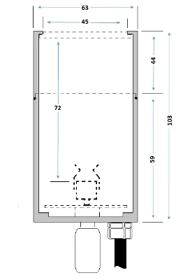The exterior dimensions are 103mm x 63mm not including 250mm spike.