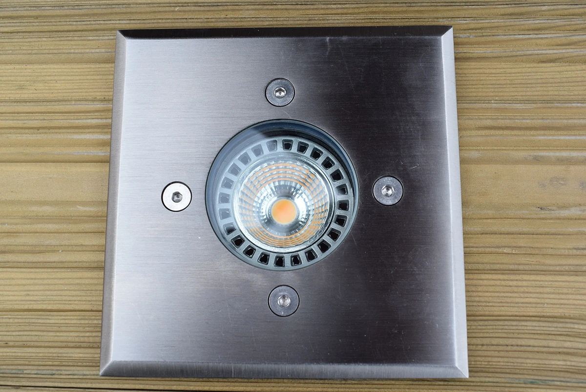 The ‘Cubik’ is a 240v large square stainless steel [5mm thick ] topped recessed aluminium light with a protective