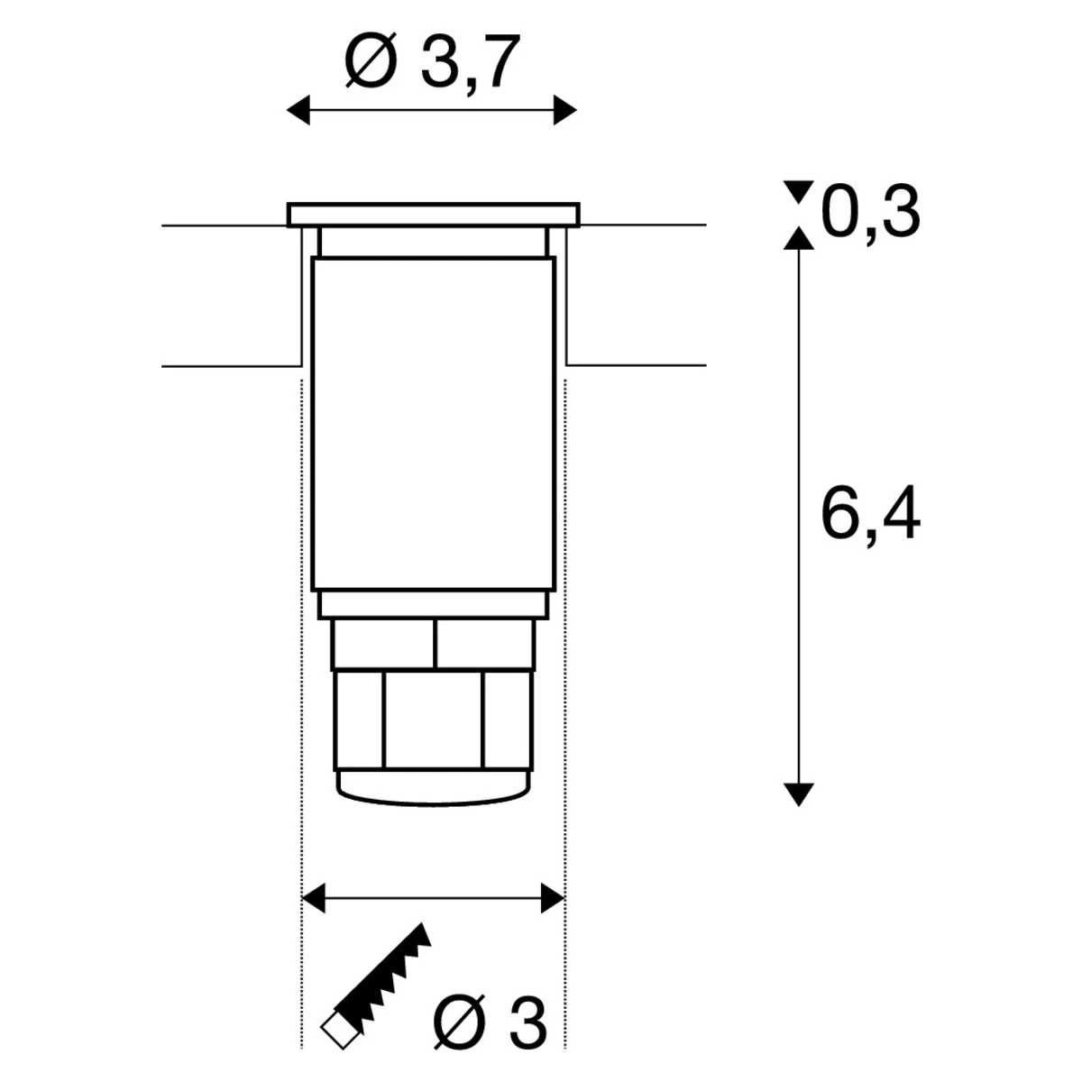 and the very shallow cut out is 3cm (30mm). This makes it an ideal recessed up light for patios and Deck areas. It comes with