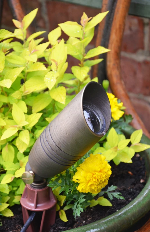 Illuminating plants, shrubs, trees, statues or ornaments is easy with this brass up light. Angle the spotlight head in various