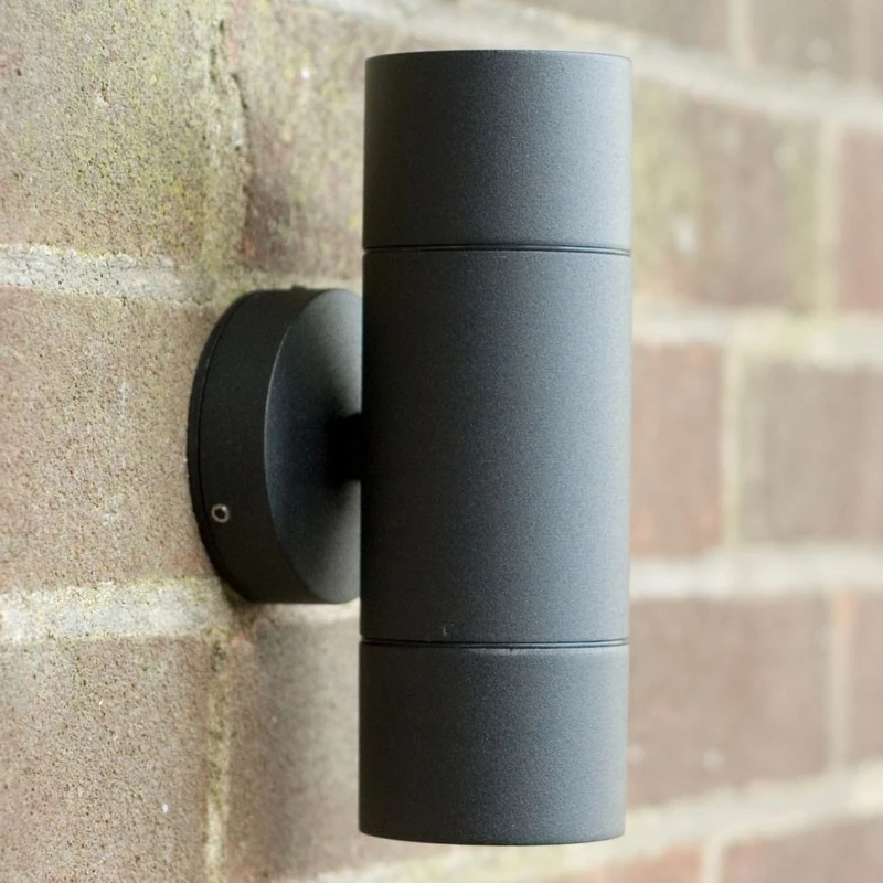 Elipta, compact, garden wall up / down light, black powder coat, mains 240v, GU10, 35w max