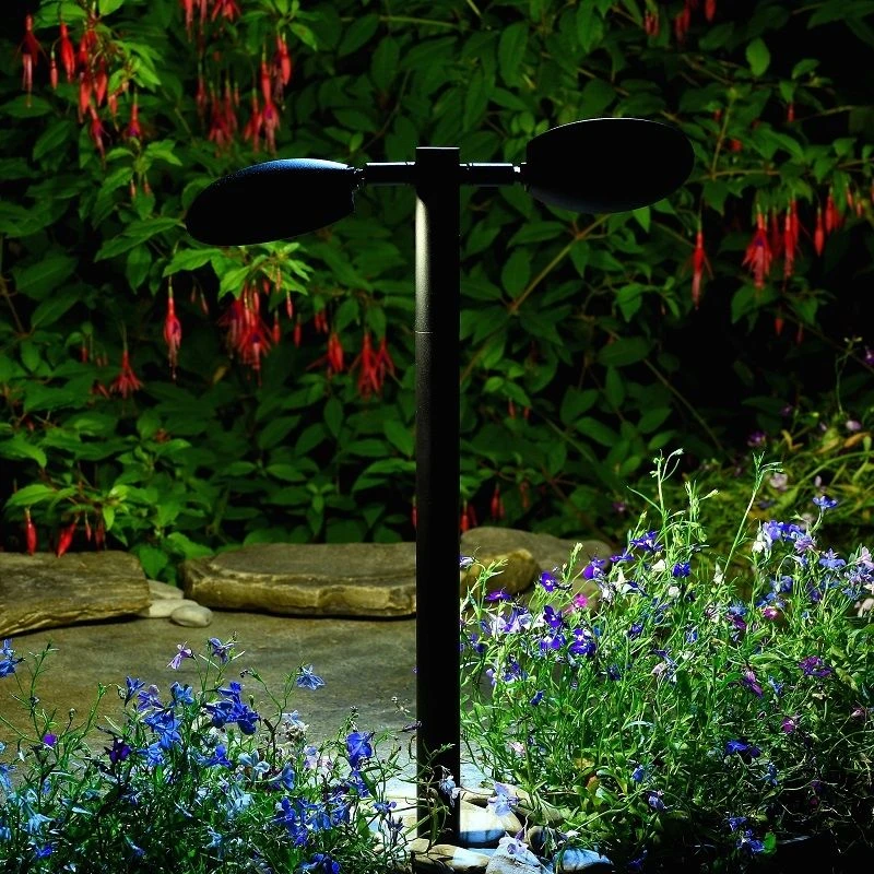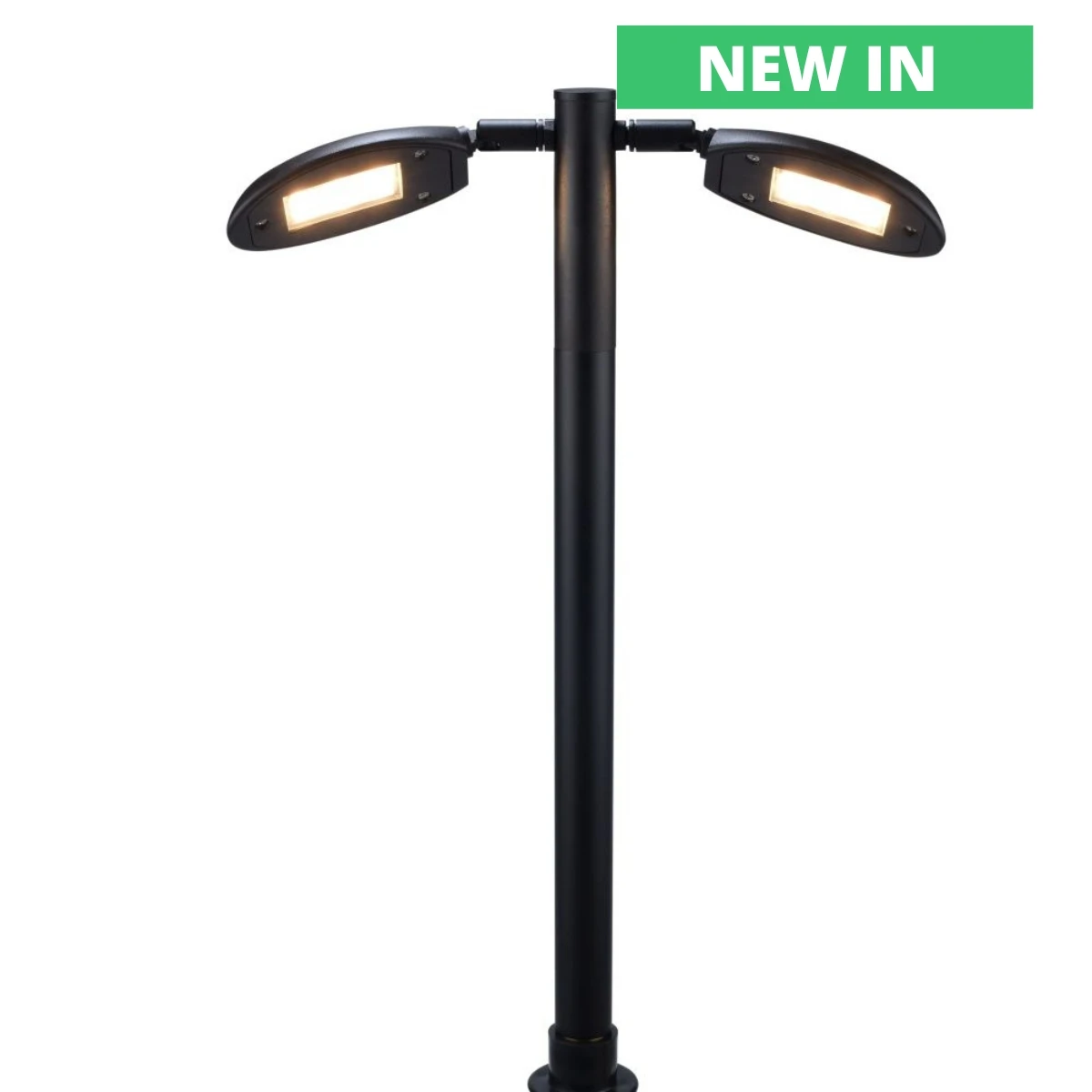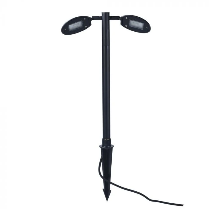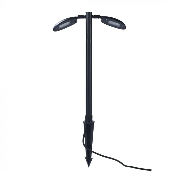 The Elipta 12v Path Light Duo is a double head pole-mounted path light with 2 x 2w built in warm white LEDs to provide a soft pool of lighting for paths, steps and low planting. The adjustable heads can be tilted to put the light where you want it. And with its curved shape and semi-matt black textured powder coating it will easily blend in with most planting schemes. At 400mm tall it is the ideal height for most situations, but if you need the extra height it can be extended to 700mm with the addition of the E6031 extension pole.