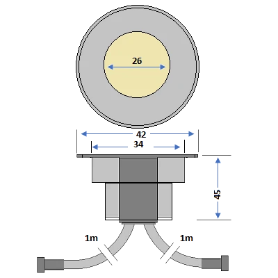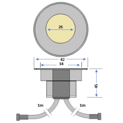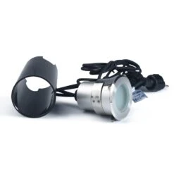 supplied for installation in paving or masonry. It has a 1m long input cable and a 1m output cable with IP44 2-pin input