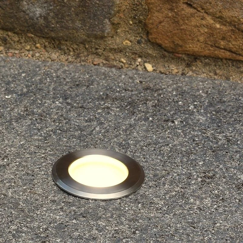 Lumina is a small recessed deck light with a 1w warm white led, frosted lens and chamfered stainless steel top. It is