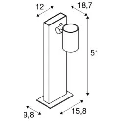 ENOLA_C Out Pole is a modern style path light bollard in Aluminium and Glass with an Anthracite finish. It stands 510mm tall and has an integral 9w COB LED module inside. The colour temperature is 3000k and the lumen output is 800 Lumens. The total consumption of power is 12w. The LED driver included uses 500mA. The LED Module should last for approximately 30000 hours. The beam angle of the head is 35° and the tilt from the head is 45° . The bollard is rated at IP55.