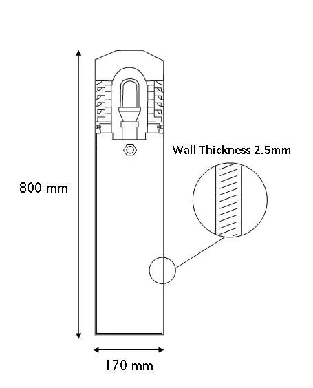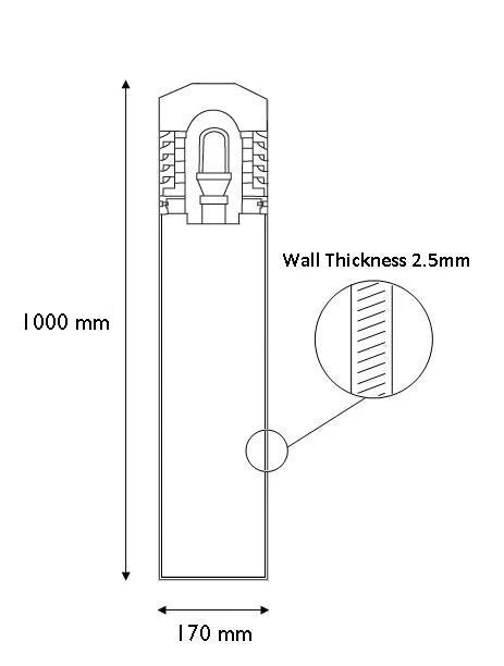 The head and 2.5mm thick extruded cylinder of the bollard are heavy duty die-cast aluminium. All screws are stainless steel,