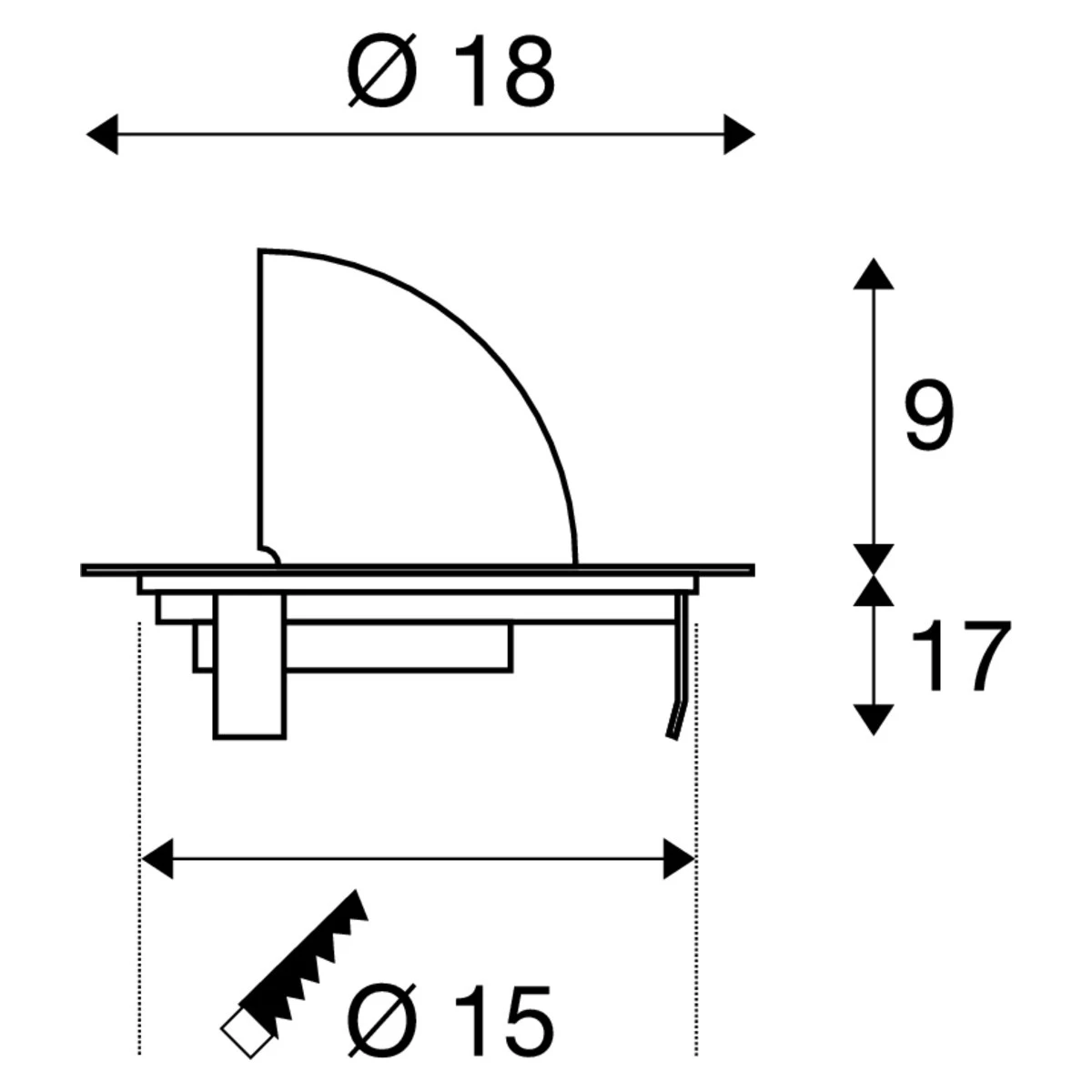 The Gimble out is an adjustable recessed up-light in mains 220 – 240v. It has an integral 13w warm white 3000k LED module which can be replaced by the manufacturer or one of their approved service technicians. The LED lamp life is approximately 35,000 hours. The LED gives out 1000 lumens which equates to an 80w incandescent lamp.