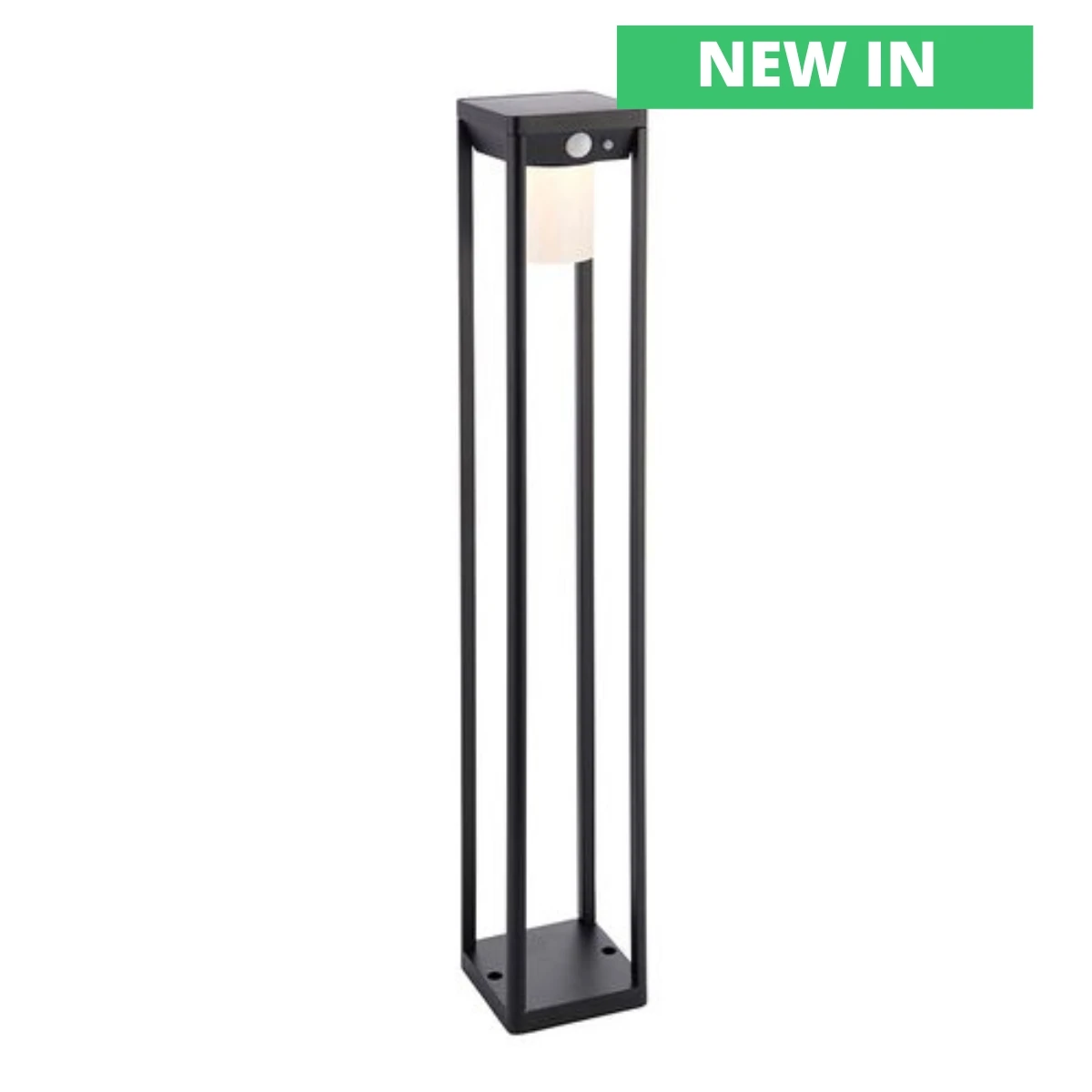 Save on energy bills without compromising on style. Modern design solar powered bollard light with Black Powder Coates Aluminium and white pc diffuser. PIR sensor to help light the way – 110 degrees detection angle and 8m maximum range.