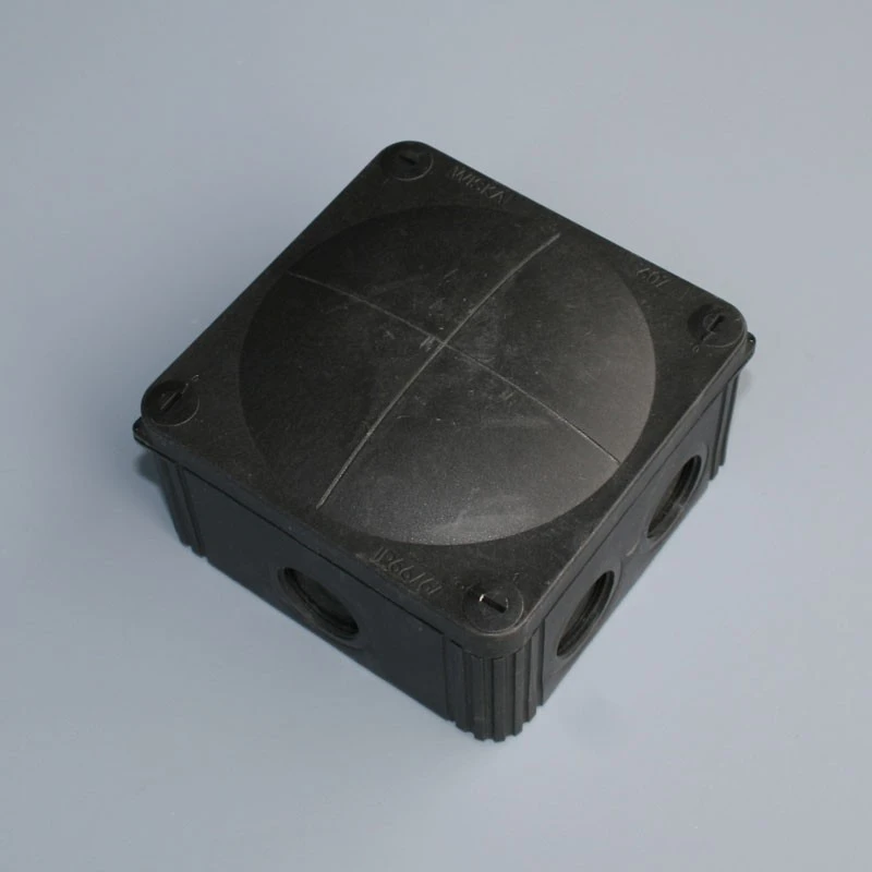 IP66 rated black weatherproof junction boxes. C/w terminals/membrane entries Black 85 x 85 x 50mm.