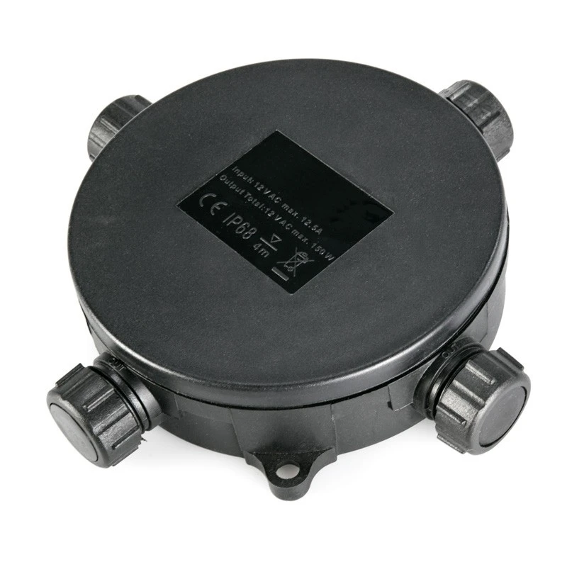 GLWJB provides an IP68 cable connection of up to 3 Patilo Plug&Play male light or extension cables to an extension cable from a Plug&Play transformer for use in damp, burial or underwater applications. It allows connection using the standard IP44 connectors inside the housing with outer seals which clamp around the cable to provide a waterproof seal.