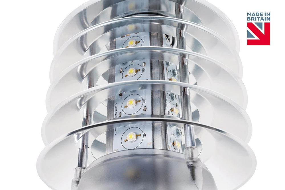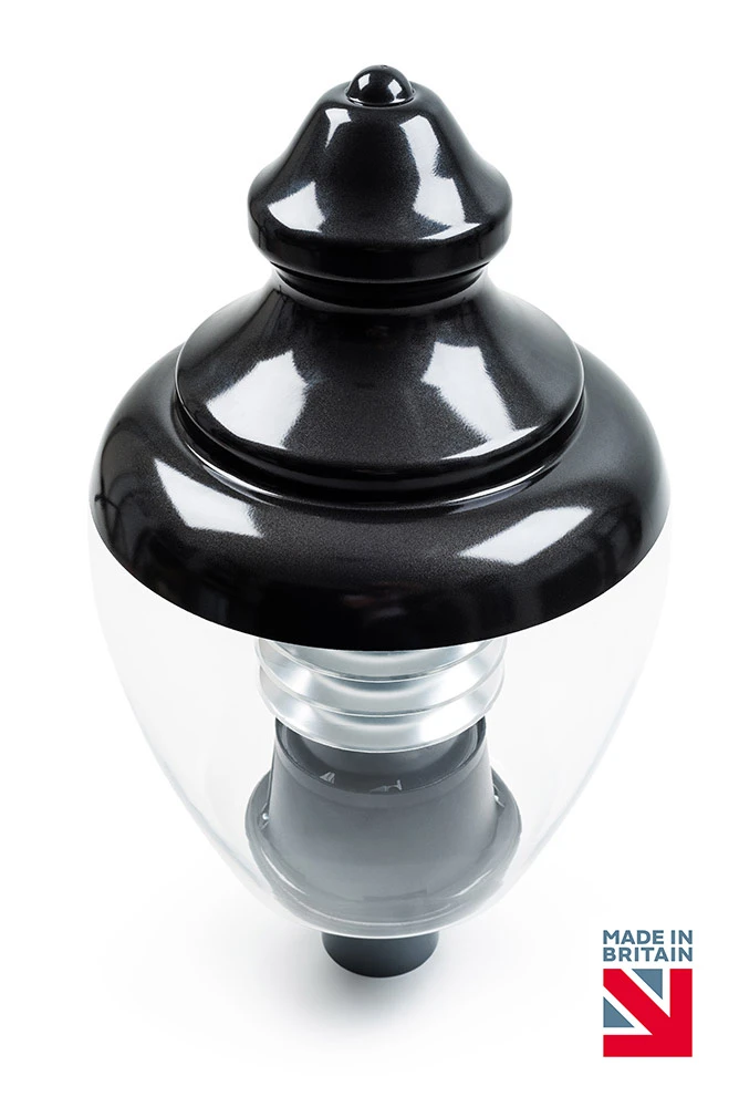 The Larkfield is one of a range of British Manufactured Kent Named Commercial Street Lights/ Amenity Lights. The Larkfield is available in black or silver finish and a choice of three colour temperatures , 6000k, 4000k and 3000k, photocell and Dali dimmable control gear. It also comes with either a 76mm spigot mount or a 60mm spigot mount and option to inlcude a 180 degree spill shield.