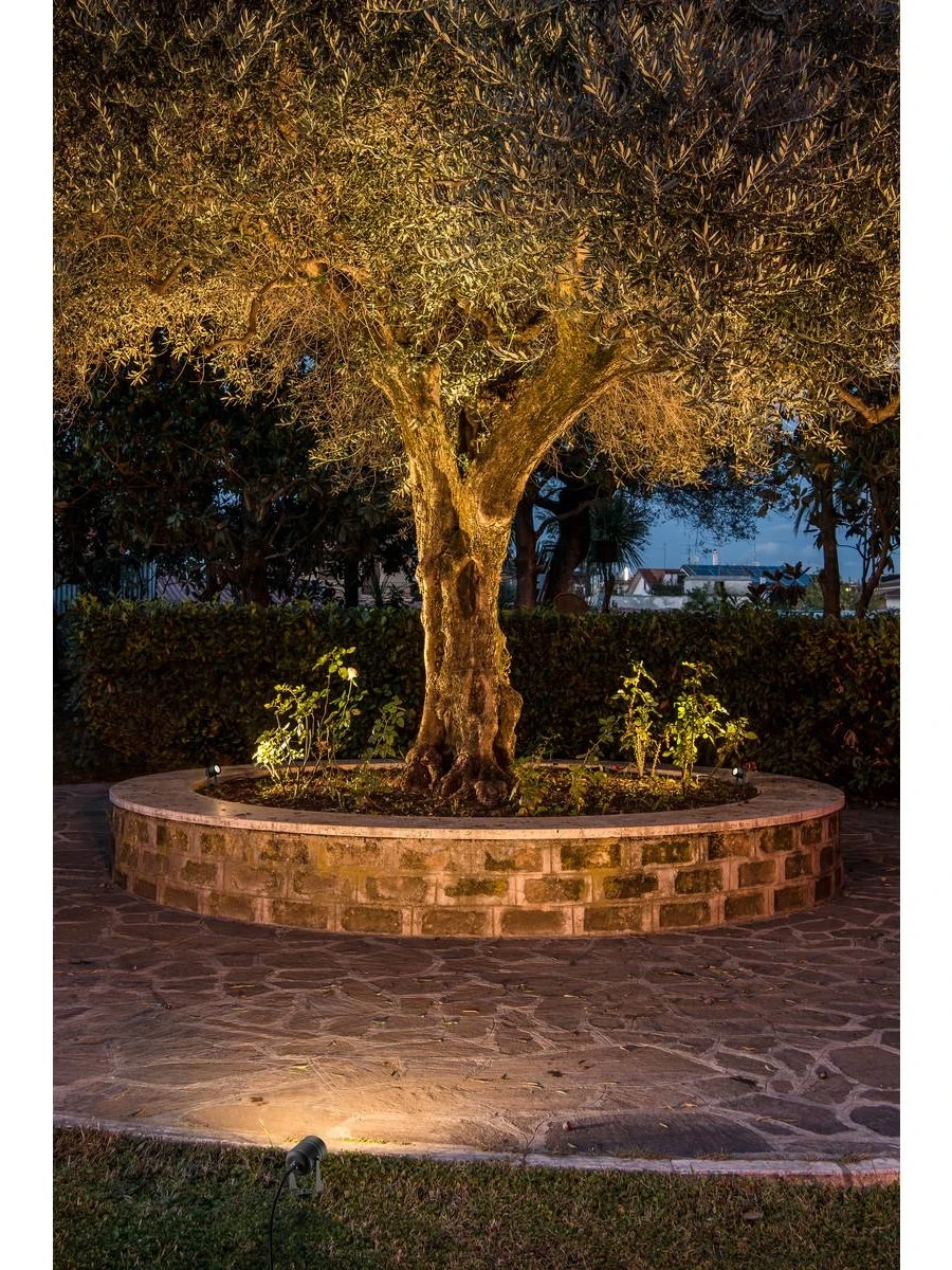 The warm white 3000k colour temperature works well illuminating a variety of shrubs, trees, features, brickwork
