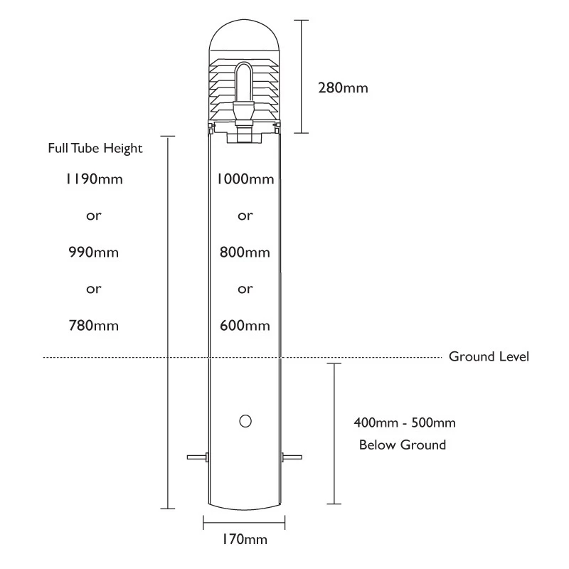 NOTE: The overall bollard height may be up to 7cm taller than the standard height due to the larger bollard head. This
