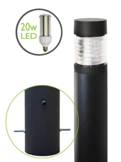 set into concrete. There is an optional secure cable outlet. This allows easy wiring after the bollard is fixed in place.