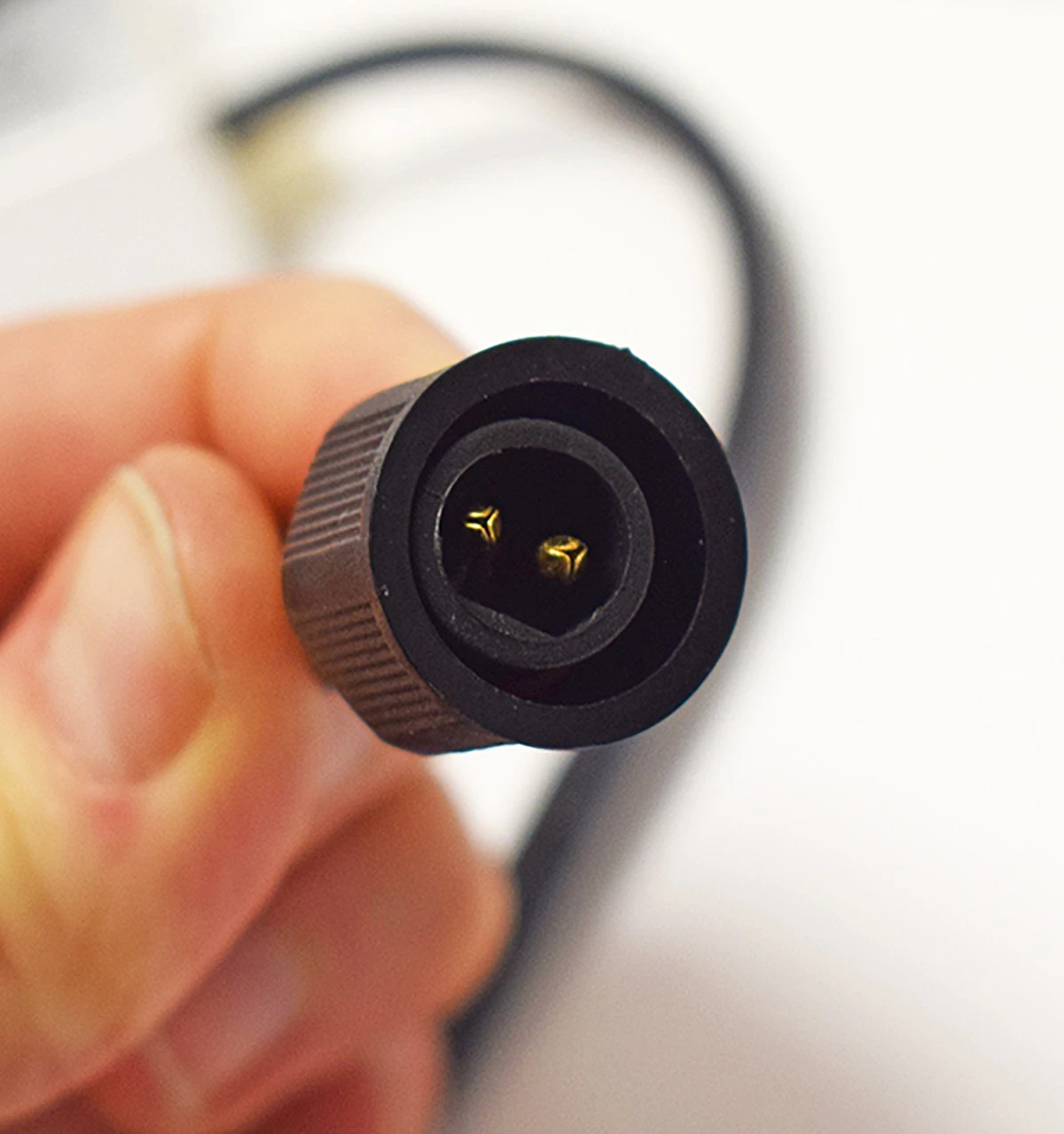 converts to 24v DC output via the transformer. The output cable has a ‘D-Connector’ plug & play male 2 pin adaptor