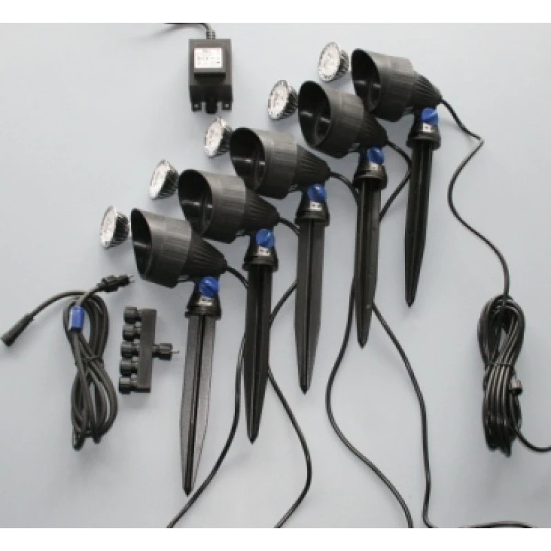 small focal points, or for use as an underwater spotlight in fountains and waterfalls. This 5-spot kit comprises 5 spotlights,