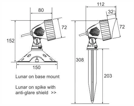 | Kit contents | Five Lunar spotlights c/w glare shield & 5m cable with Plug & Play connector Five Ground Mounting Spikes Five MR16 3w warm white led lamps One 20w Plug & Play transformer rated to supply 5 x 3w led lamps One 5 way Plug & Play connector |