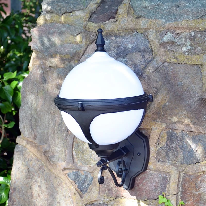 The Mystic Wall Light is a Globe shaped wall lantern with a bright