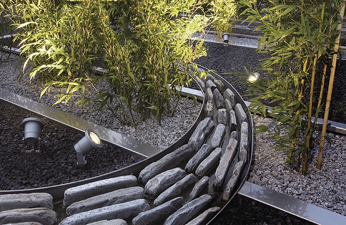 underside of the top of a pergola and send a pencil beam of light down to the floor to illuminate the pathway below or back