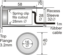 supplied with 1m H05RN two core cable. They can be recessed without the sleeve in decking sleeper walls and other materials