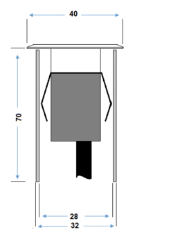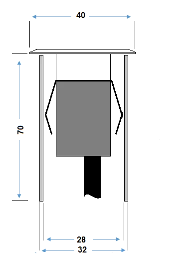 using a 28mm wood drill bit. Diameter 40mm (sleeve 32mm; 28mm cutout without sleeve); recess depth 75mm. The top section
