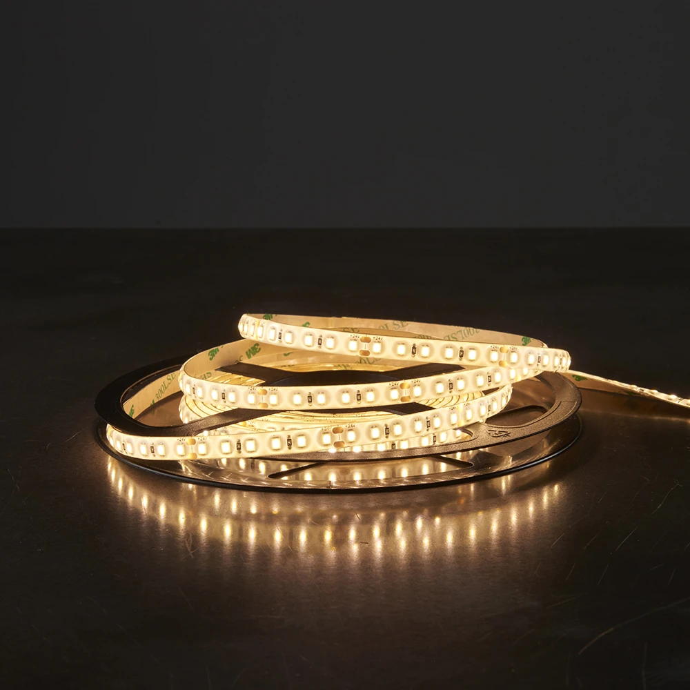 This 5 metre roll of Orion65 LED strip is an IP65 rated, 24V warm white LED flexible strip light, which is easy to install due to the 3M self-adhesive