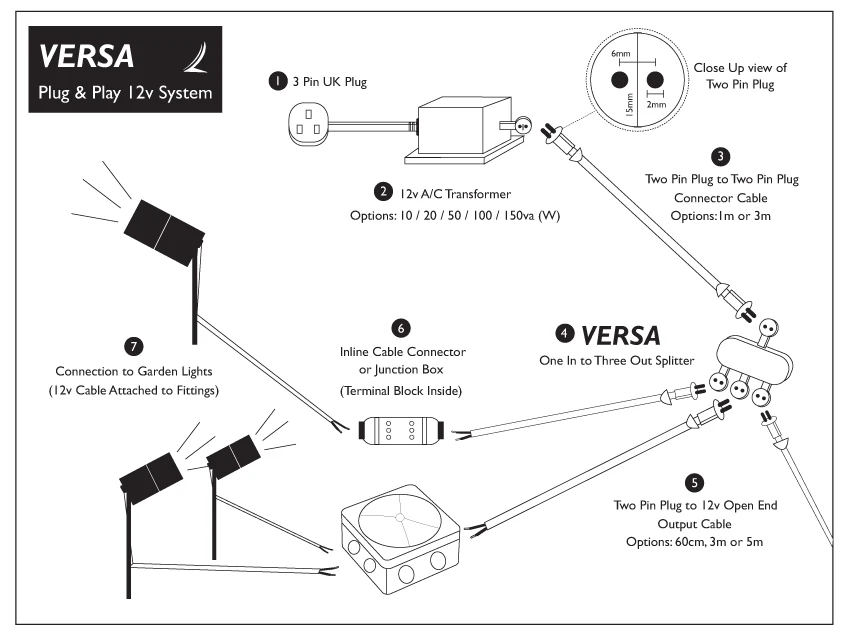 of 12v garden lighting with no wiring required. Each connection is secured in place with a cap which screws overs the
