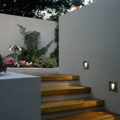 amongst medium-height planting, spotlighting features at ground level or washing light across a lawn, path or gravel