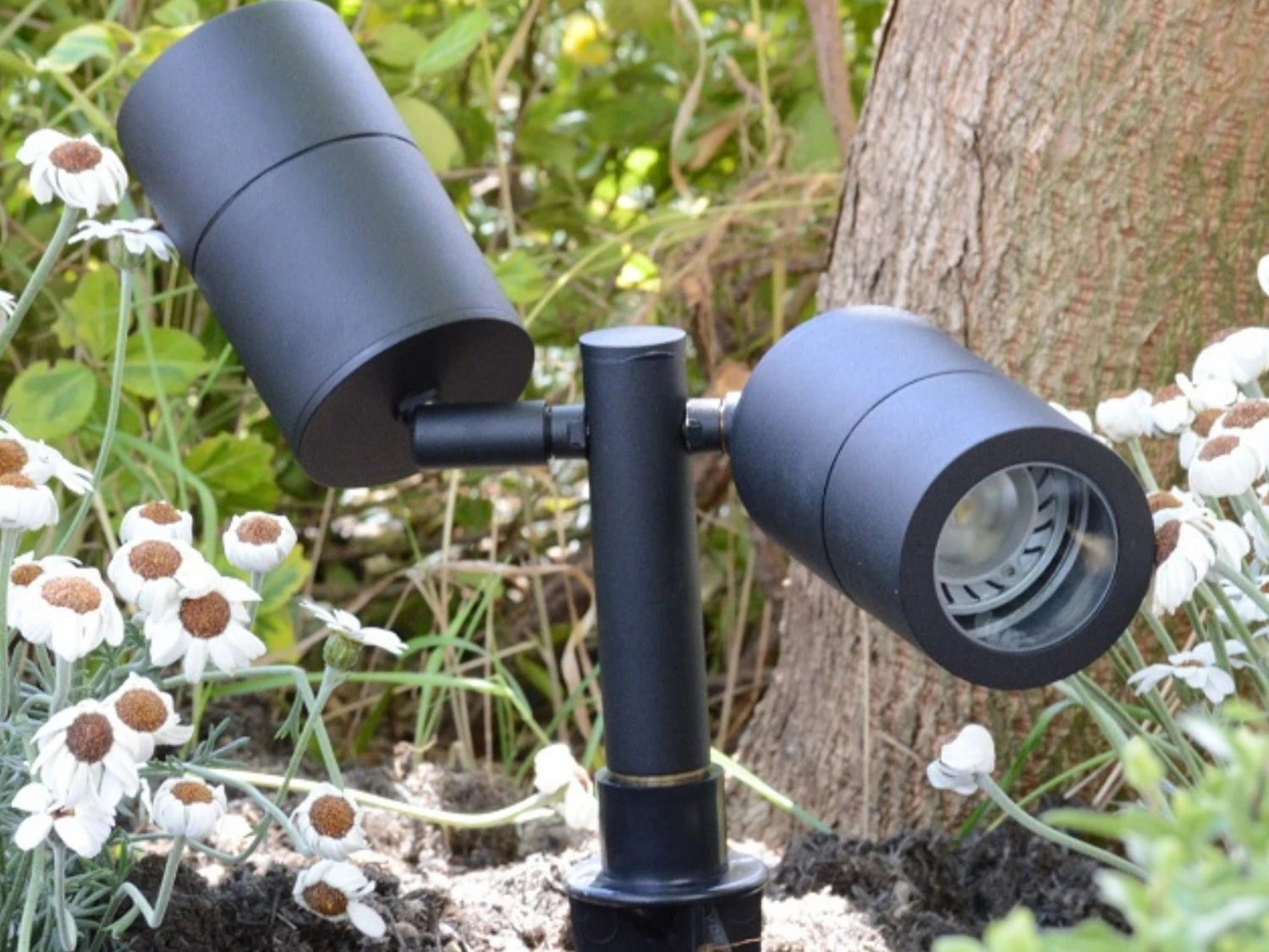 Pole spike twin spot, Black powder coat, 12v, MR16 lamp, IP65