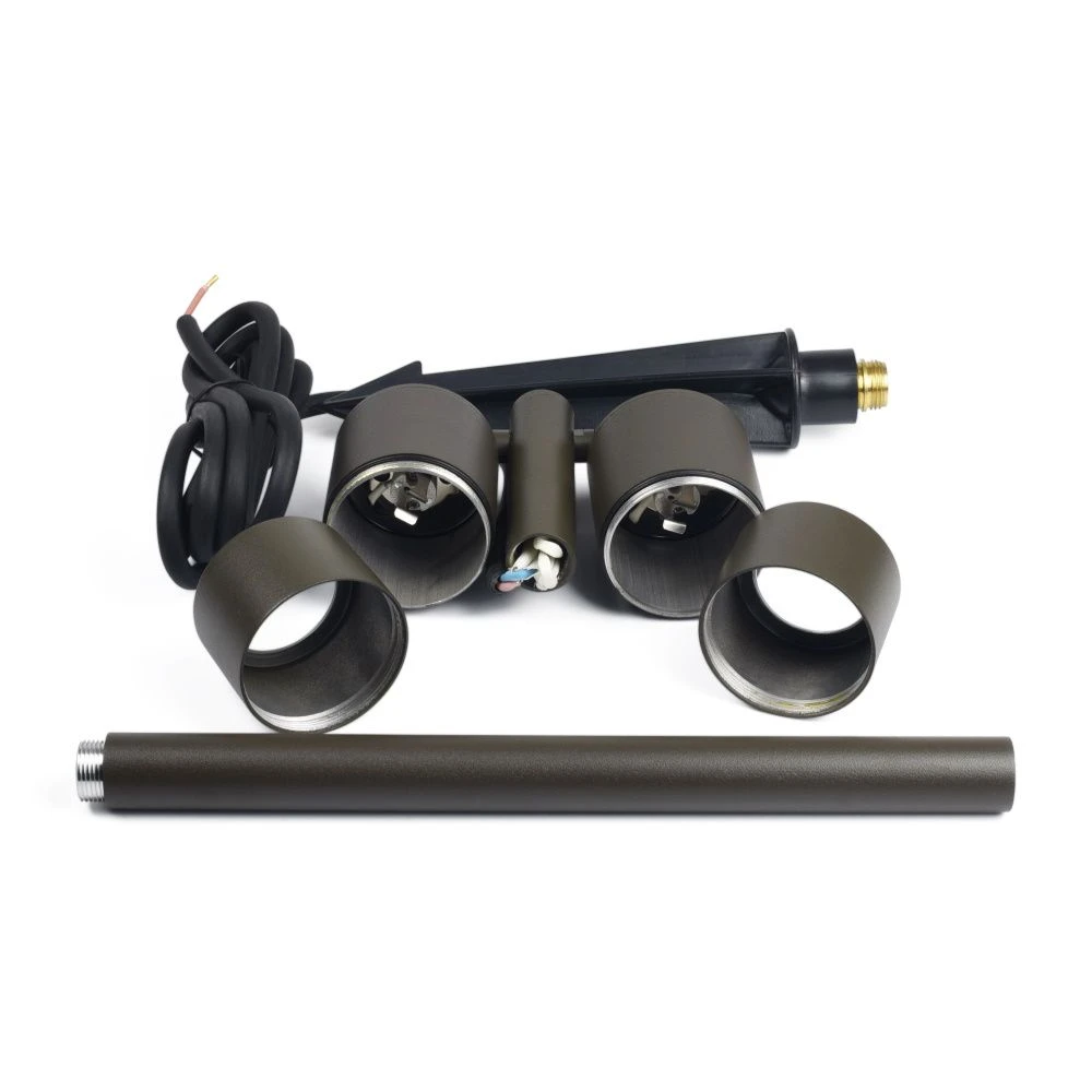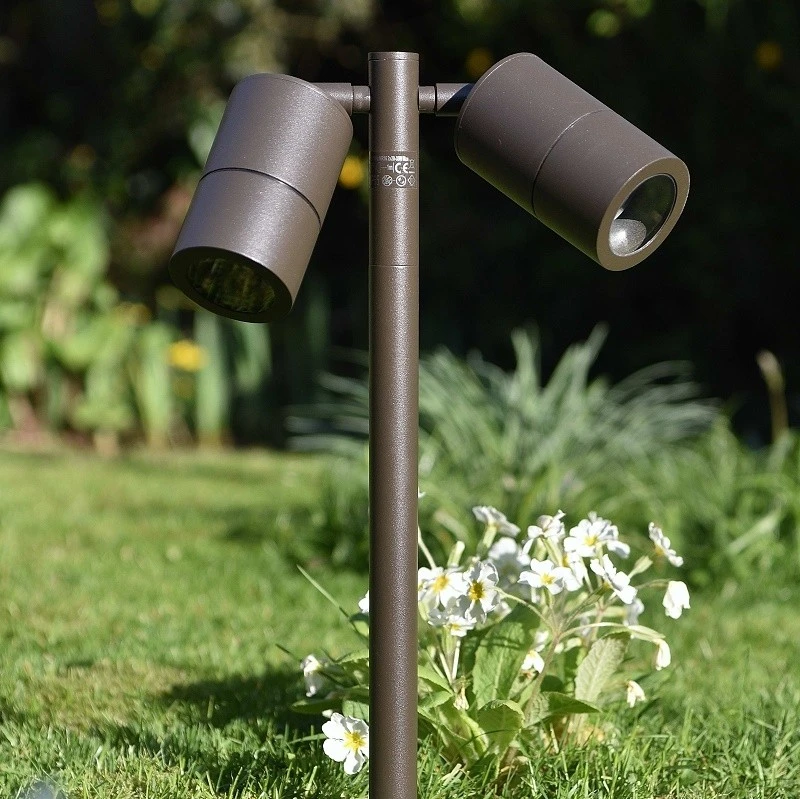 Pole spike twin spot, Rustic brown powder coat, 12v, MR16 lamp, IP65