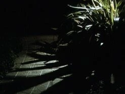 from amongst medium-height planting, spotlighting features at ground level or washing light across a lawn, path or gravel