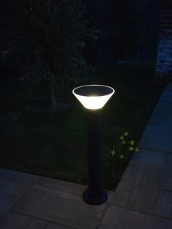 The Olympia Solar Path Light is a professional aluminium post light with a durable and decorative diffuser. The bright light emitted from the long life LEDs is an impressively bright 420 lumens. Unlike cheaper alternatives, this is an amazingly high output for any solar path light. Due to the shape of the lens, illumination from the Olympia 800mm path light is an ‘anti glare’ ‘spread of light. The diffuser shape helps shine light outwards and downwards in a soft wash. The frosted detail on the polycarbonate diffuser also helps this, as well as looking contemporary and stylish. The Olympia Solar Path light is also built to last. This option has a very robust external mounting base.