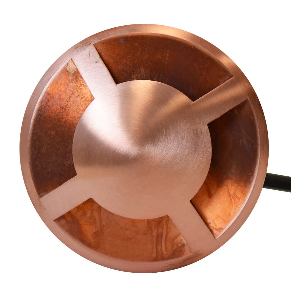 The QuadMarka elegant Natural Copper recessed light mounts in the ground, in walls, steps or decking. Copper creates a