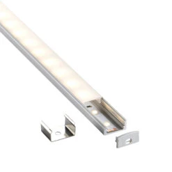 The RigelSLIM Surface is a slimline aluminium extrusion which benefits from having a push on polycarbonate diffuser. This profile can be easily mounted on any flat surface using the brackets included with the profile. The extrusion effectively conceals the LED tape and gives a softer lighting effect and adds an additional layer of protection to your LED Tape. Also available in matt white or matt black.