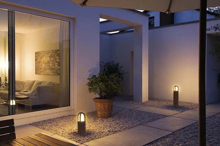can be bolted directly to a flat concrete ground or mounted on a spike