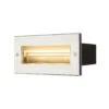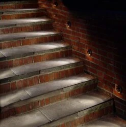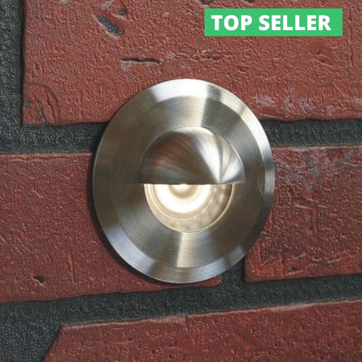 The Smoothie E8112 is a stylish Mains 240v recessed light with eyelid constructed from 316 marine grade stainless steel and is rated as IP65. Great for illuminating steps or patios and for use with GU10 low energy LED lamps. The Smoothie is fitted with a frosted lens as standard to diffuse the lighting and the eyelid hood hides the lamp from above when walking past. The light is located by an ‘O’ ring on the body into a sleeve tube so that no external screw fixings are visible. Remember that recessed step-lights are in effect recessed spotlights – avoid using them facing viewpoints.