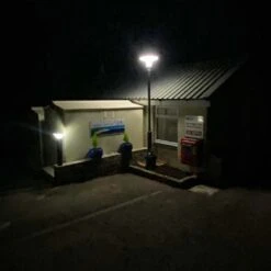 Super bright LED chips in daylight white (6000K) shine downwards and really emphasise the white colour of the polycarbonate diffuser. This is ideal for areas such as car parks and walkways or larger patio areas. Recommended mounting height for UK solar street lighting is 3-5m.
