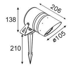 | Stirrup bracket mounts on walls or the ground spike supplied. A 2m input cable is provided for connection to the mains supply via a separate weatherproof junction box or underground joint kit (not supplied). Using a single RCD for large numbers of 240v fittings is not recommended due to the risk of nuisance tripping. We advise the use of separate RCD protection for each circuit and a maximum of 12 fittings per RCD. |