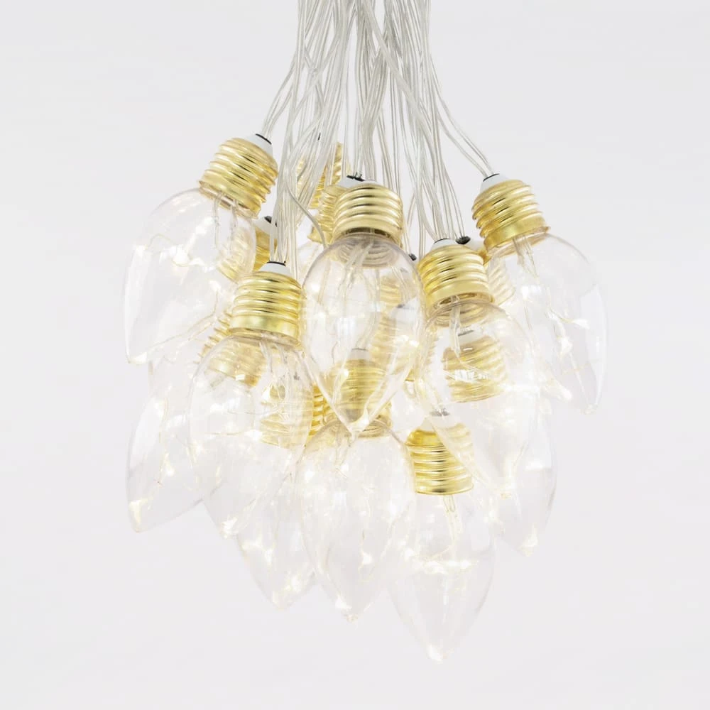 Lights. Each set has 20 bulbs that each contain 4 vintage warm white micro LEDs. The bulbs are spaced 75cm apart along