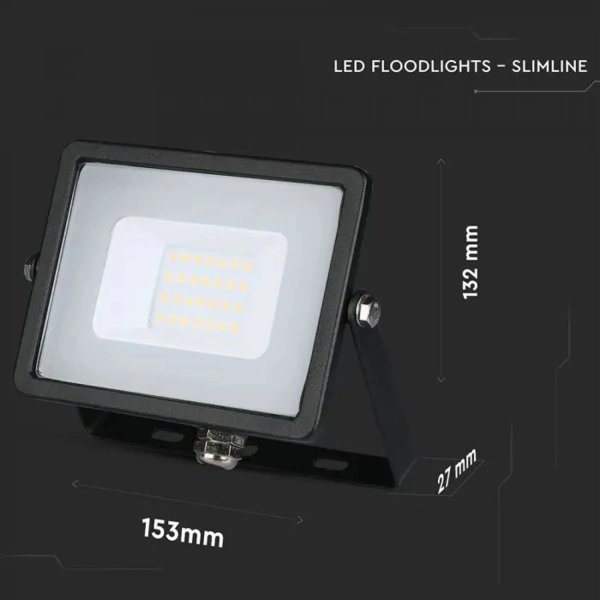 V-Tac’s all-new SMD slim floodlight is manufactured with cutting-edge components to deliver exceptional performance. Together with its new sleek design, its durability and water resistance, the 20W Floodlight presents as extremely sturdy and perfect for outdoor applications. As with all LED lights, floodlight brightness is most accurately measured in Lumens, rather than Watts. For instance, this 20w slimline floodlight will give out the same brightness (1600 lumens) as a 200W halogen floodlight while consuming far less energy. Furthermore, with 30,000 hours/9 years (8-hr usage a day) of average lamp life, this 20W façade light presents the best alternative for traditional halogen floodlights.